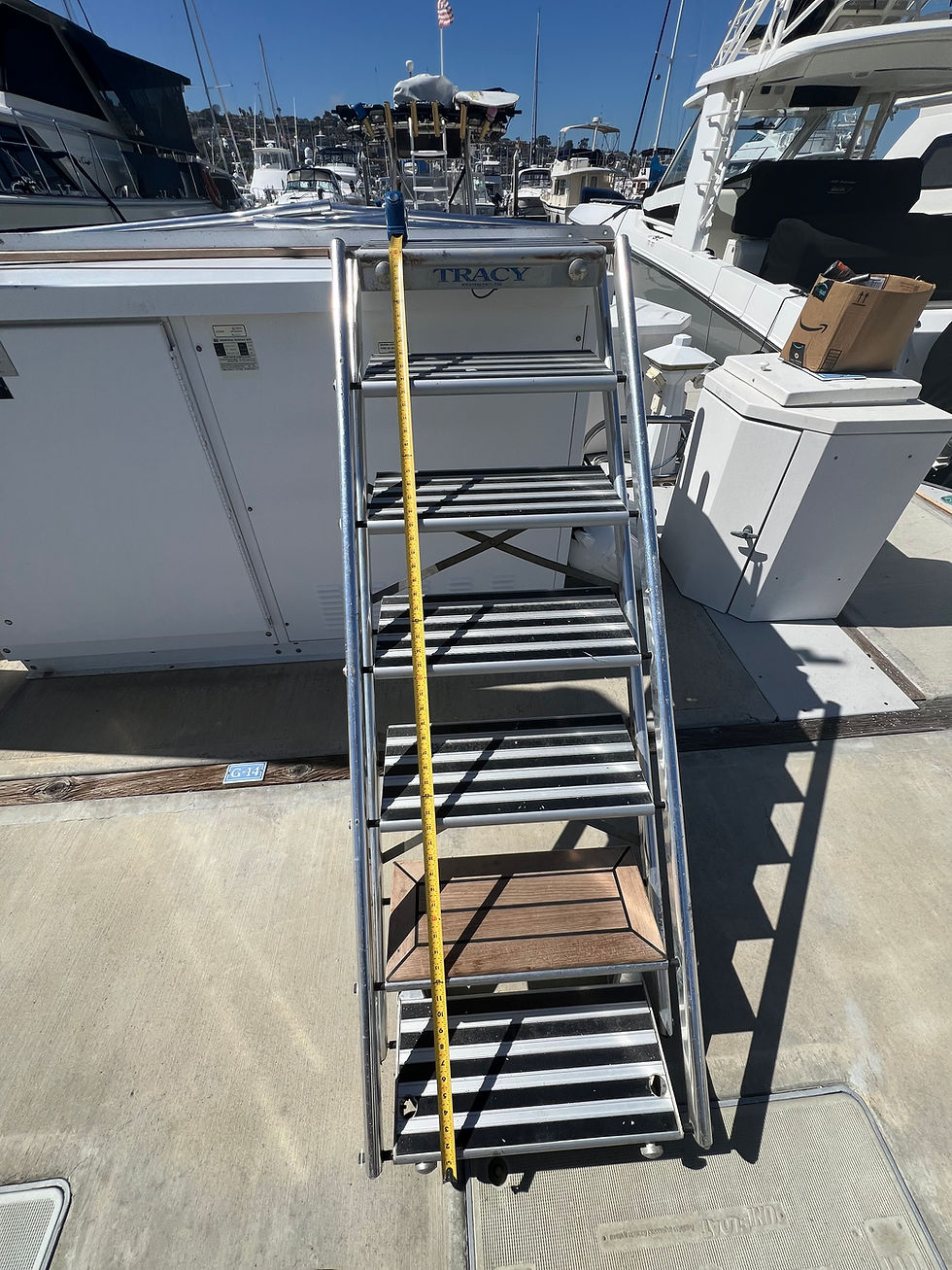 TRACY (MARQUIPT TYPE) YACHT ACCOMMODATION (7) STEPS , self leveling,”HANDRAIL NOT INCLUDED BUT AVAILABLE “, these are particularly used for medium to large sized yacht with tall freeboard.